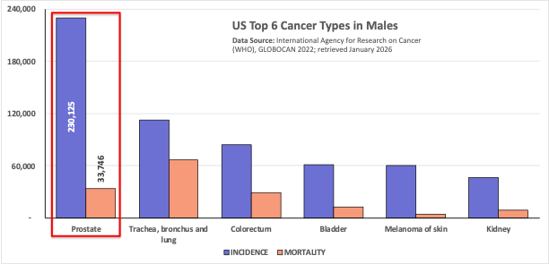 With a global incidence of 1.4 million new cases every year, prostate cancer is the second most common cancer in men just behind lung cancer. In the US, prostate cancer incidence outpaces all other cancer types. However, prostate cancer has a 70% lower mortality than lung cancer because it is detectable and treatable with the right tools.